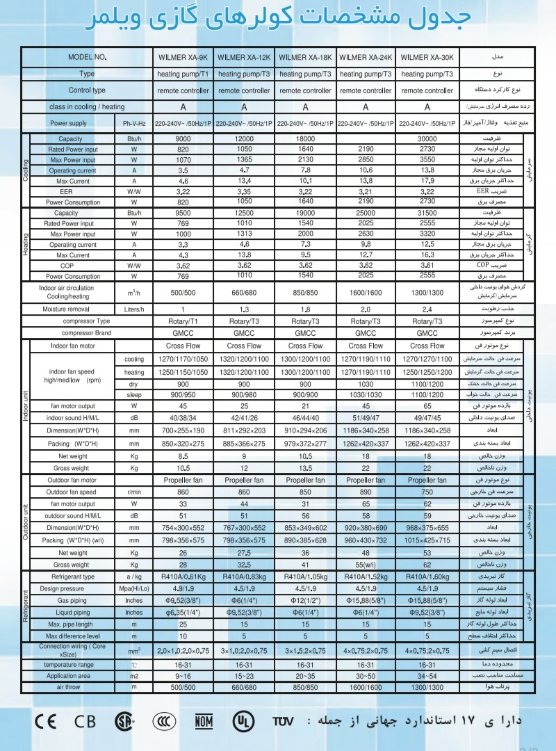 در ظرفیت 18000 گرید A در مصرف انرژی -سرمایشی و گرمایشی